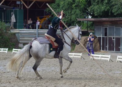 So nicht geprobt, aber es bot sich an und klappte: ich ritt mehrfach zwischen den Tänzern durch. Im Schritt, im Trab, und im Galopp schließlich umrundete ich sie von beiden Händen.