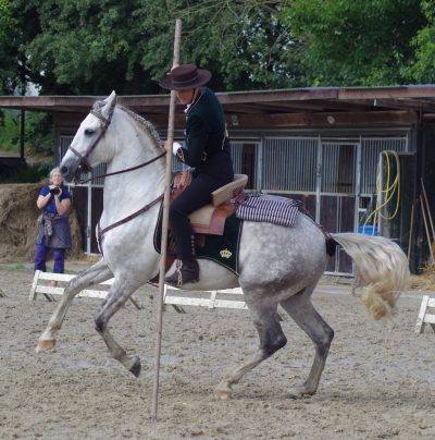 Ich stimmte Dón kurz auf die Garrocha ein – kein Problem. Nur zwei, drei Mal anspringen lassen und gut. Er war nicht sonderlich kernig, fühlte sich aber gut an und würde im Viereck, darauf verließ ich mich jetzt einfach mal, spritzig genug sein.