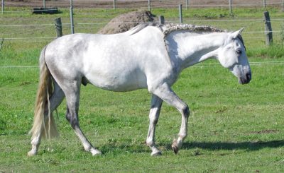 Positiv überrascht hat mich ein kurzer Blick auf Heinke und Let’s go Lightly, eine Schimmelstute, die ich in Bad Segeberg schon in der Prüfung „Das junge Pferd“ gerichtet hatte und deren Schwung und Ausdruck vor allem im Trab sich massiv gebessert hatte.