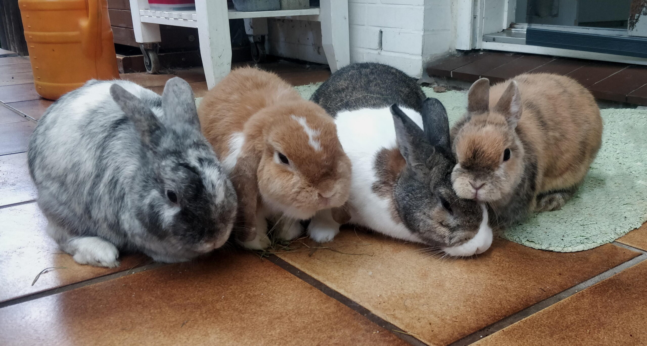 Das Trio war ein Traum zusammen. Ich hatte nicht vor, daran etwas zu ändern. Als ich allerdings von einer Tierarzthelferin Ende August 2024 gefragt wurde, ob ich ein Kaninchen aufnehmen könne, hörte ich mir dessen tragische Geschichte zumindest an. Der Kleine war erst 16 Monate alt und seine Besitzer wollten ihn wegen einer Zahnfehlstellung einschläfern lassen. Die taffe Tierzärtin weigerte sich und sagte, sie operiert ihn kostenlos (!) und sucht ein neues Zuhause für ihn. Und da wurde ich gefragt.
