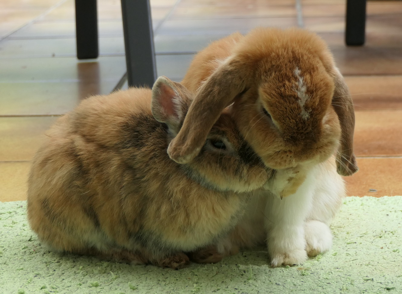 Für Quincy suchte ich einen neuen Partner, es sollte ein Kastrat in seinem Alter sein, und so fand ich „Caramel“, den ich umtaufte in Clooney. Er sollte angeblich im Januar 2015 geboren sein, womit die beiden nahezu gleich alt wären. Quincy und Clooney mochten sich vom ersten Augenblick an und ich habe selten so schnell und intensiv ein Kaninchen in mein Herz geschlossen wie Clooney.