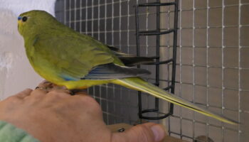 Kirsten Zoller (www.wildvogel-rettung.de) hatte diesen Vögeln eine Voliere gebaut, und nun waren nach fast 5 Jahren nur noch ein Fein- und ein Bourkesittich übrig. Die Vögel waren aus den Jahrgängen 2012 bis 2017, also waren diese beiden (ringlosen) irgendwas zwischen 6 und 11 Jahren alt. Sie erfuhr über die Federnhilfe von mir und wir stellten fest, dass wir uns schon viel früher kennengelernt hatten – durch die Pferde. Die Welt ist klein 🙂